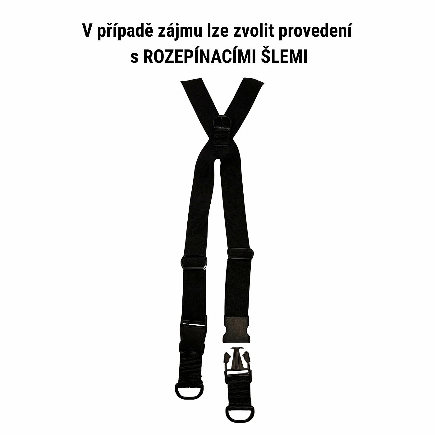 - Tento typ je opatřen speciálními popruhy, které umožní kalhoty stáhnout až do pasu.