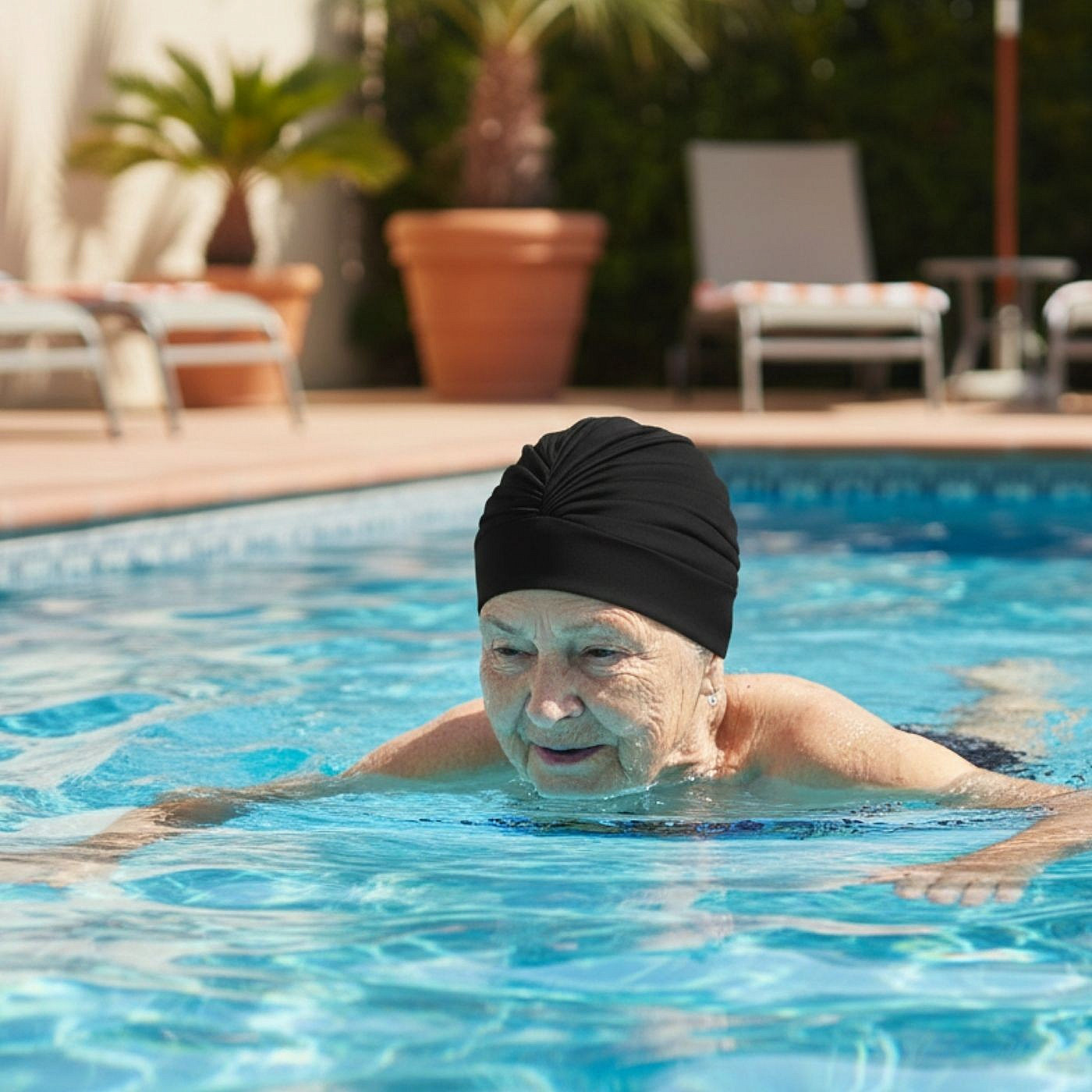 Slouží k ochraně vlasů při pobytu v sauně, u bazénu nebo na pláži. Vzhledem k použitému materiálu neudrží vlasy suché při plavání. Plavecká čepice se snadno nasazuje i sundává a díky univerzální velikosti dobře padne většině uživatelek.