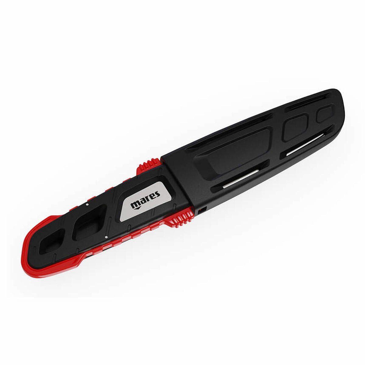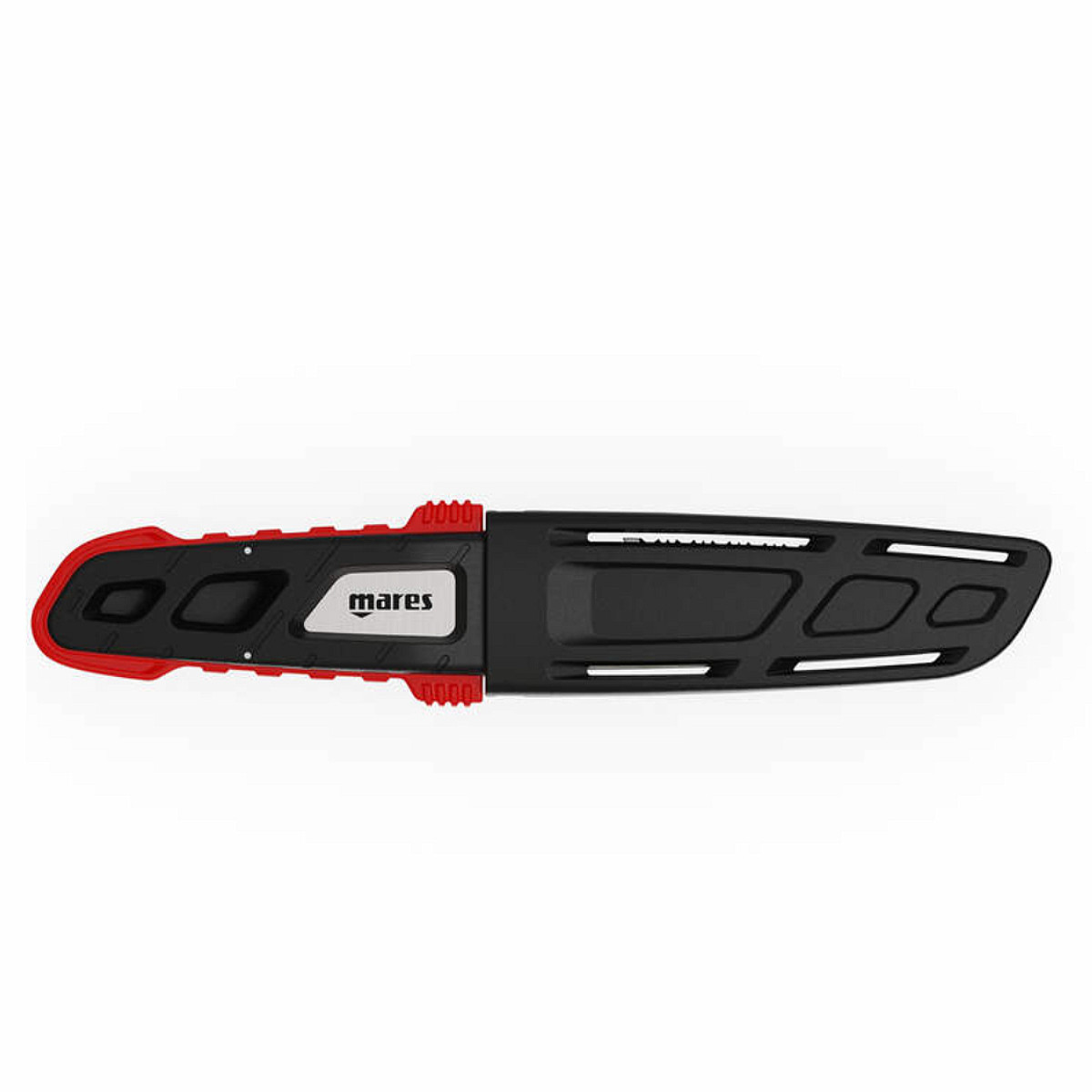 Nůž je uzpůsoben tak, aby pasoval do průchodek pro pohodlné umístění nože na Mares BCD.