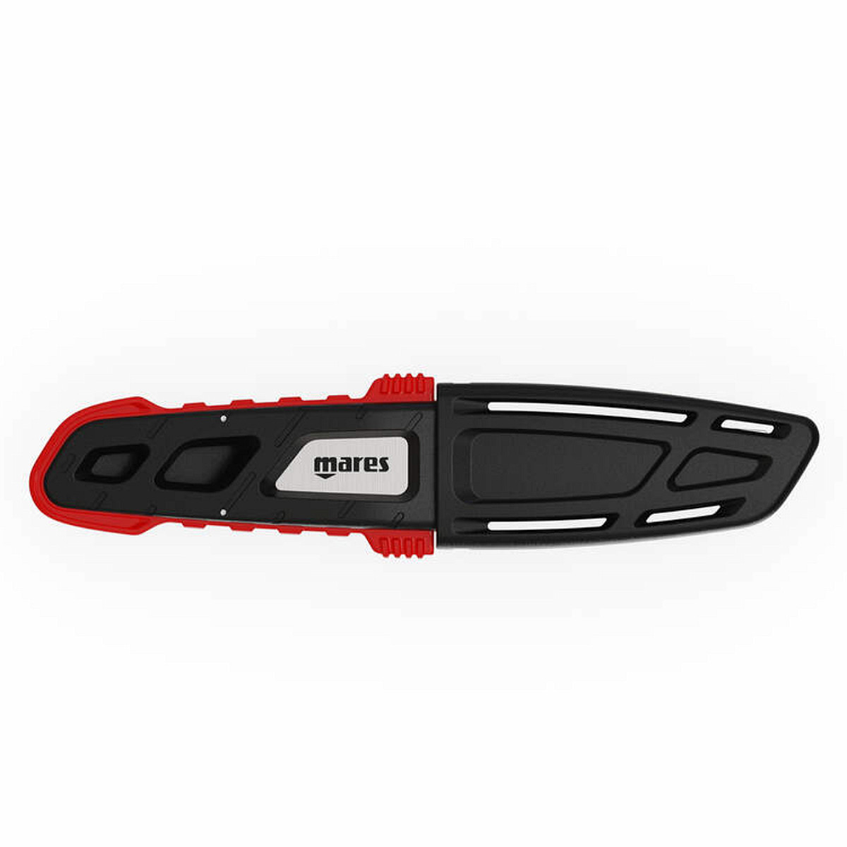 Součástí nože je plastové pouzdro. Nůž na potápění můžete snadno upevnit na Mares BCD díky průchodkám.