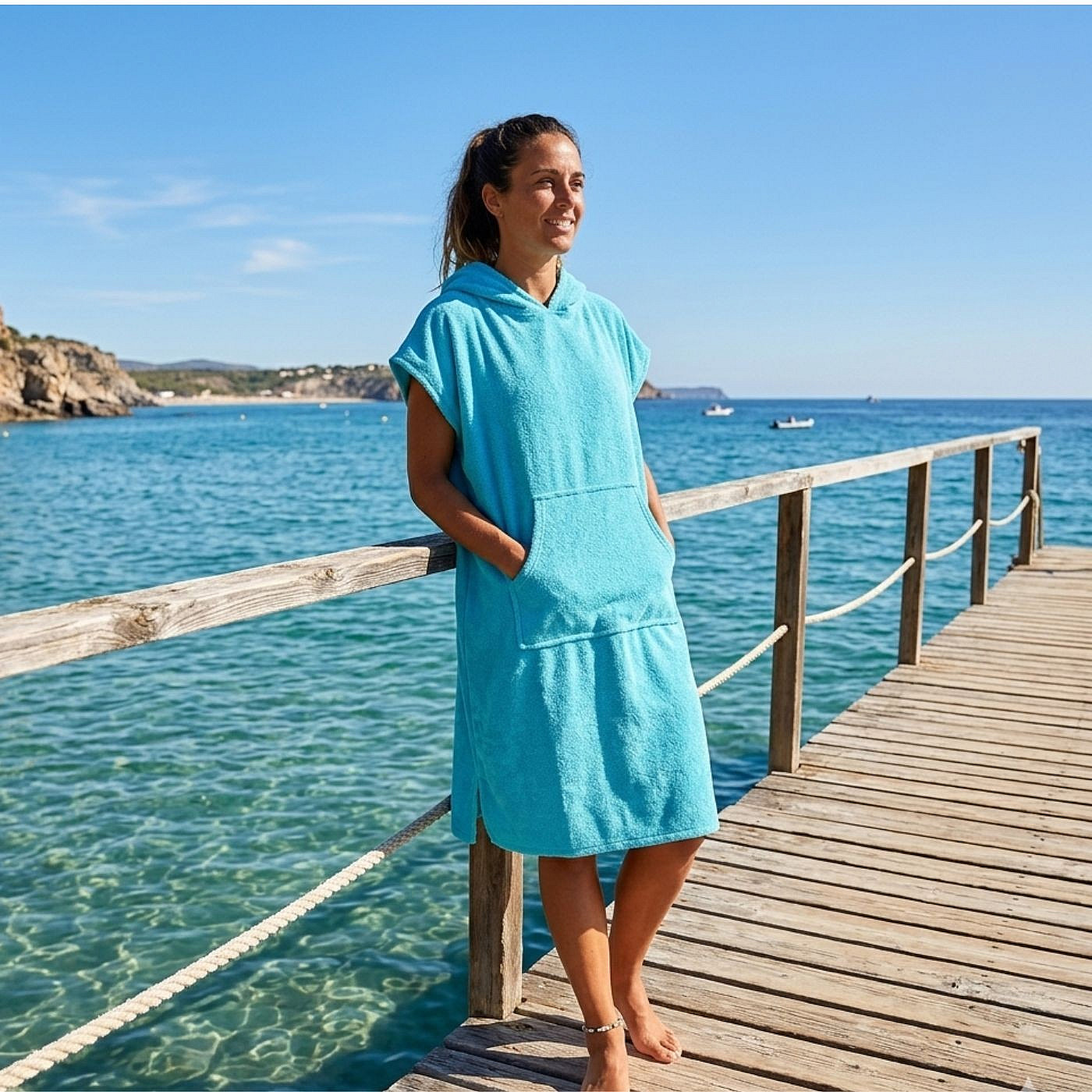 Savá osuška k vodě má přední kapsu a kapuci. BAMBOO pončo je skladné a lehké na cestování k vodě, ať už se vydáte k moři, k bazénu nebo k jezeru. Samozřejmostí je velká kapsa vpředu a kapuce.
