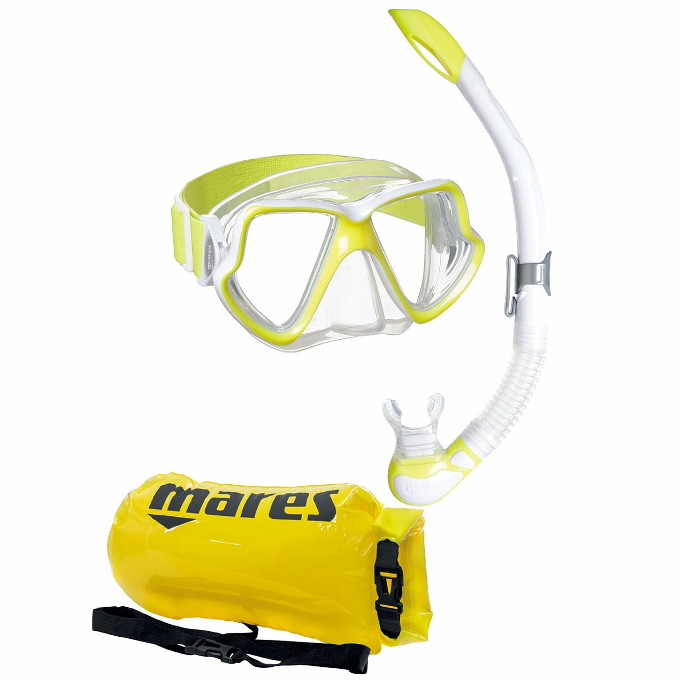 Popis produktu Šnorchlovací set maska a šnorchl Mares WAHOO s vakem - neon žlutá